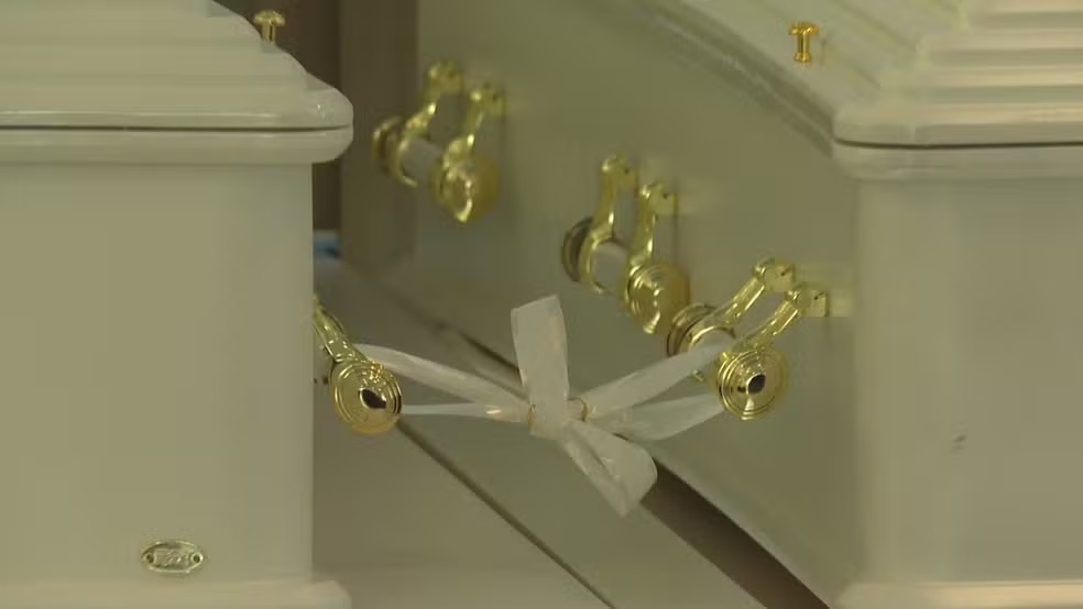 Fita branca e alianças unem caixões de casal vítima de queda de avião em SP