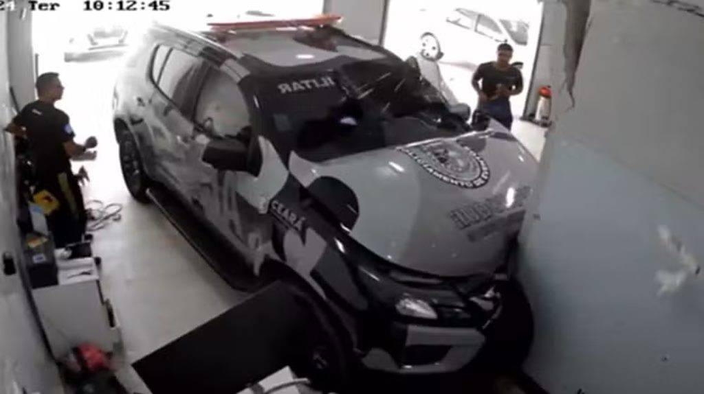 Funcionário de oficina colide viatura da polícia duas vezes seguidas em Fortaleza