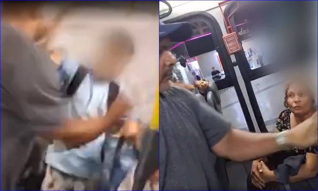 Os outros passageiros registraram o momento que o caso ocorreu. Segundo as informações, a confusão começou porque o jovem esbarrou no homem com a mochila.