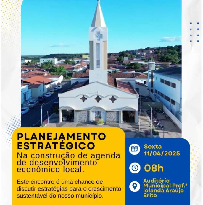Evento reúne autoridades para planejar o desenvolvimento econômico.Na próxima sexta-feira, 11 de abril, a cidade de Simplício Mendes sediará um importante evento voltado para o desenvolvimento econômico local. A partir das 8h, será realizado o Workshop de Planejamento Estratégico, no Auditório Municipal Prof.ª Iolanda Araújo Brito.