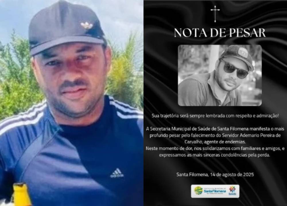Sua trajetória será sempre lembrada com respeito e admiração. A Secretaria Municipal de Saúde de Santa Filomena manifesta o mais profundo pesar pelo falecimento do servidor Ademario Pereira de Carvalho, agente de endemias. Neste momento de dor, nos solidarizamos com familiares e amigos, e expressamos as mais sinceras condolências pela perda.