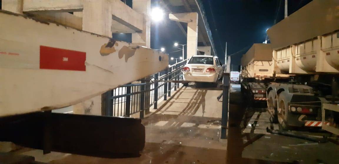 Conforme informações da Polícia Rodoviária Federal (PRF-PI), o carro desgovernado subiu a passarela por cerca de 30 metros e ficou enganchado. O condutor ainda tentou fazer a curva para retirar o veículo, mas não obteve êxito.