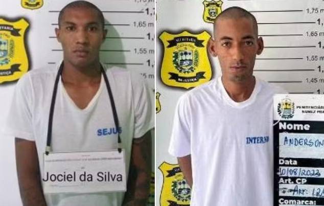 Os dois recapturados foram identificados como Jociel da Silva e Anderson da CostaA Secretaria de Justiça do Piauí recapturou, na noite desta segunda-feira (19/02), dois dos 17 fugitivos da penitenciária Dom Abel Alonso Núñez, no município de Bom. De acordo com o órgão, os dois fugitivos foram localizados na zona rural do município de Currais.