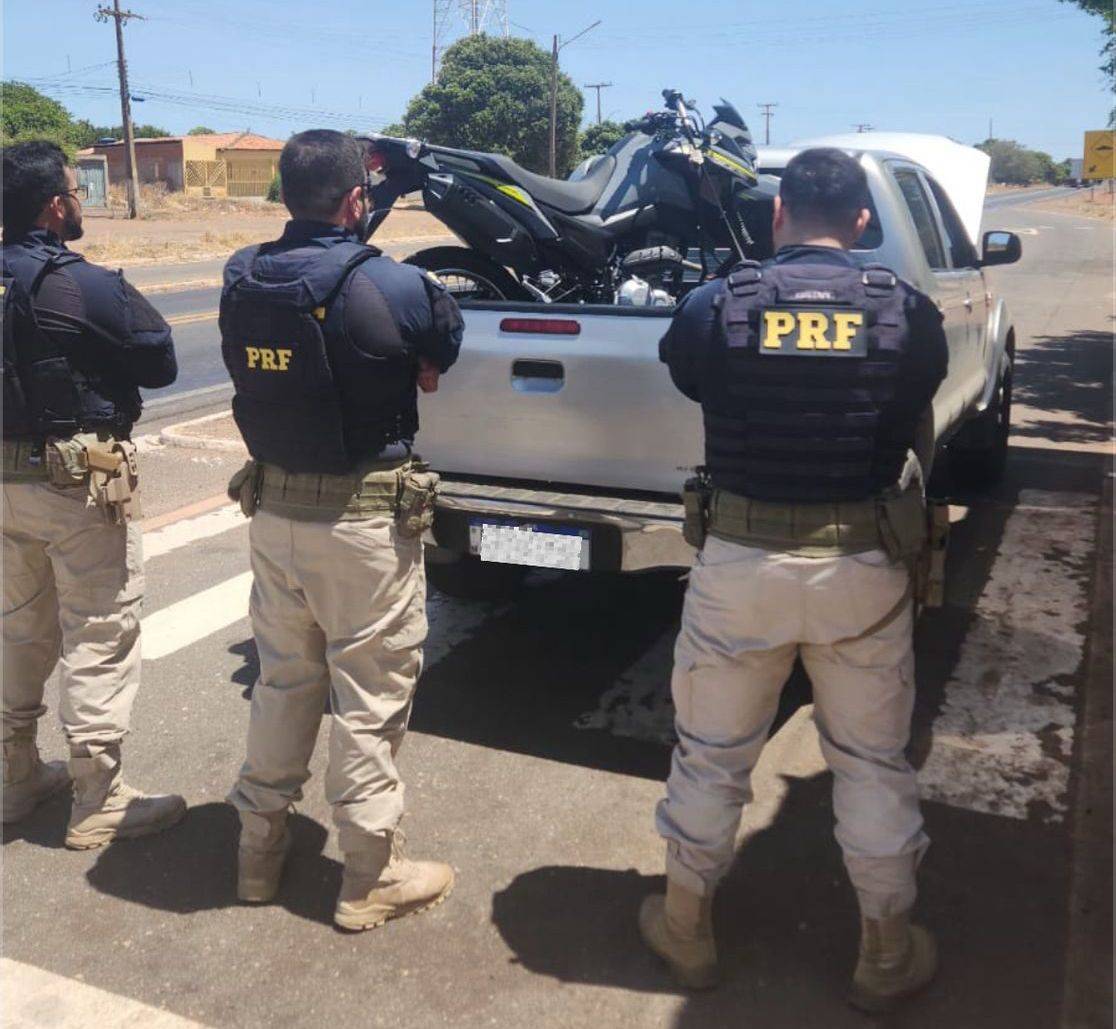 Motorista confessou ter comprado os veículos em Ribeirão-PE e planejava levá-los até Tailândia-PAUma ação de rotina da Polícia Rodoviária Federal (PRF) na manhã deste sábado (30/08) resultou em uma apreensão incomum na BR-316, em Picos (PI). Os agentes flagraram uma caminhonete Toyota Hilux prata transportando uma motocicleta Honda Bros na carroceria, e ambos os veículos eram roubados.