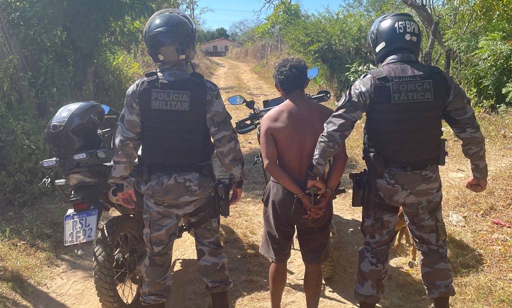 O suspeito foi encontrado às margens do rio Surubim. Ao avistar a equipe do motopatrulhamento ele tentou fugir, mas foi detido pelos policiais.