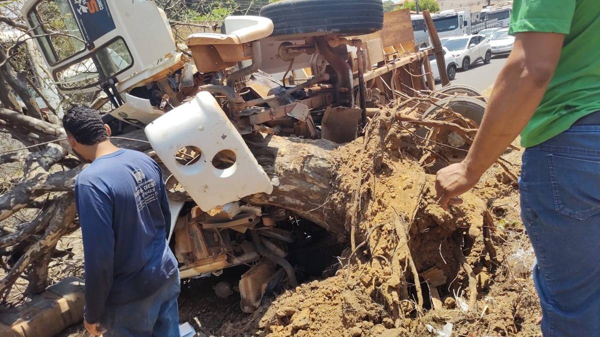 Segundo informações preliminares, o condutor seguia na rodovia federal, quando o pneu da caçamba estourou, perdendo o controle e tombando fora da pista. O veículo parou após colidir contra uma árvore.