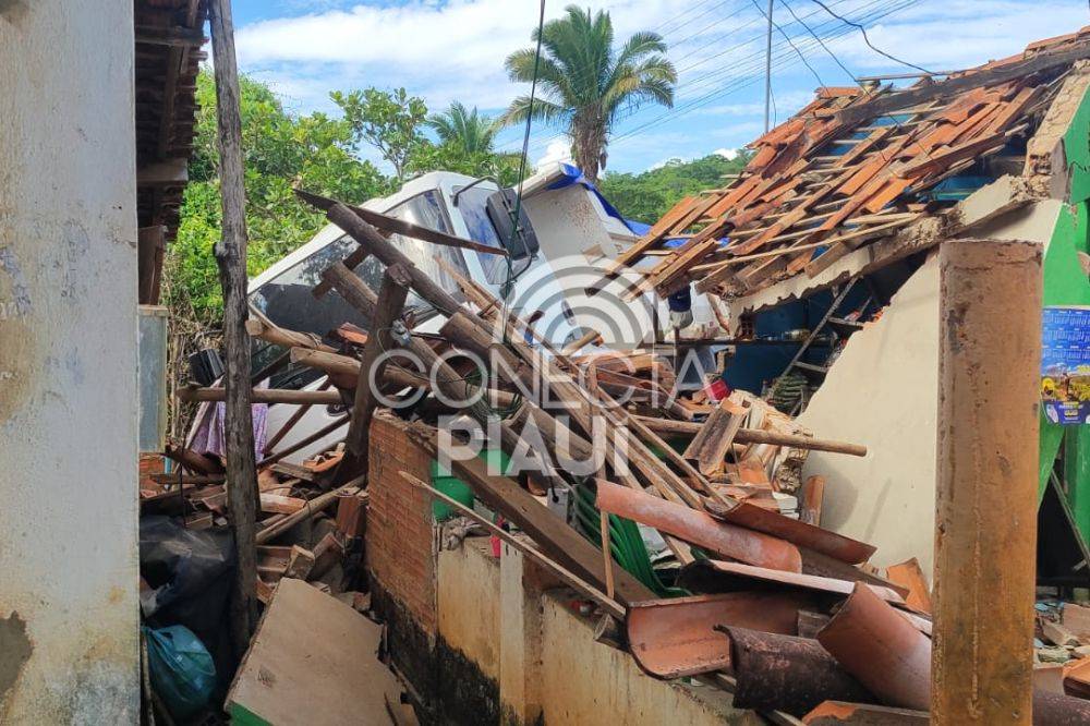 Caminhão desgovernado invade residência e deixa jovem ferida em Nazária