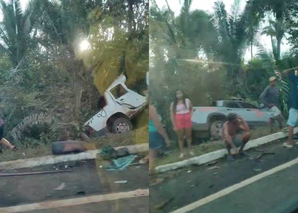 Imagens mostram um dos carros destruído e outras pessoas auxiliando as vítimas no local da colisãoUm acidente foi registrado na tarde desta terça-feira (12/08) na PI-112, entre Miguel Alves e União. Dois veículos colidiram e um deles ficou partido ao meio.