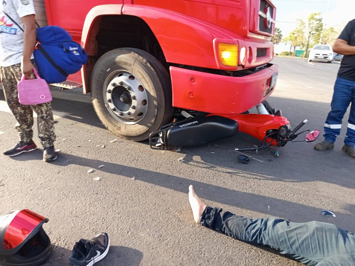 Com o impacto da colisão, o motociclista ficou ferido e recebeu atendimento médico no localUm acidente envolvendo uma motocicleta e um caminhão foi registrado nas primeiras horas desta terça-feira (12/08), na avenida Zequinha Freire, no bairro Vale Quem Tem, zona Leste de Teresina. Após a colisão, a moto foi parar debaixo do caminhão e deixou o piloto ferido.