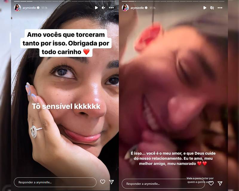 Pouco antes, o músico confirmou a fala dela, deixando os internautas animados. Ary Mirelle compartilhou um vídeo com seu amado e se declarou.