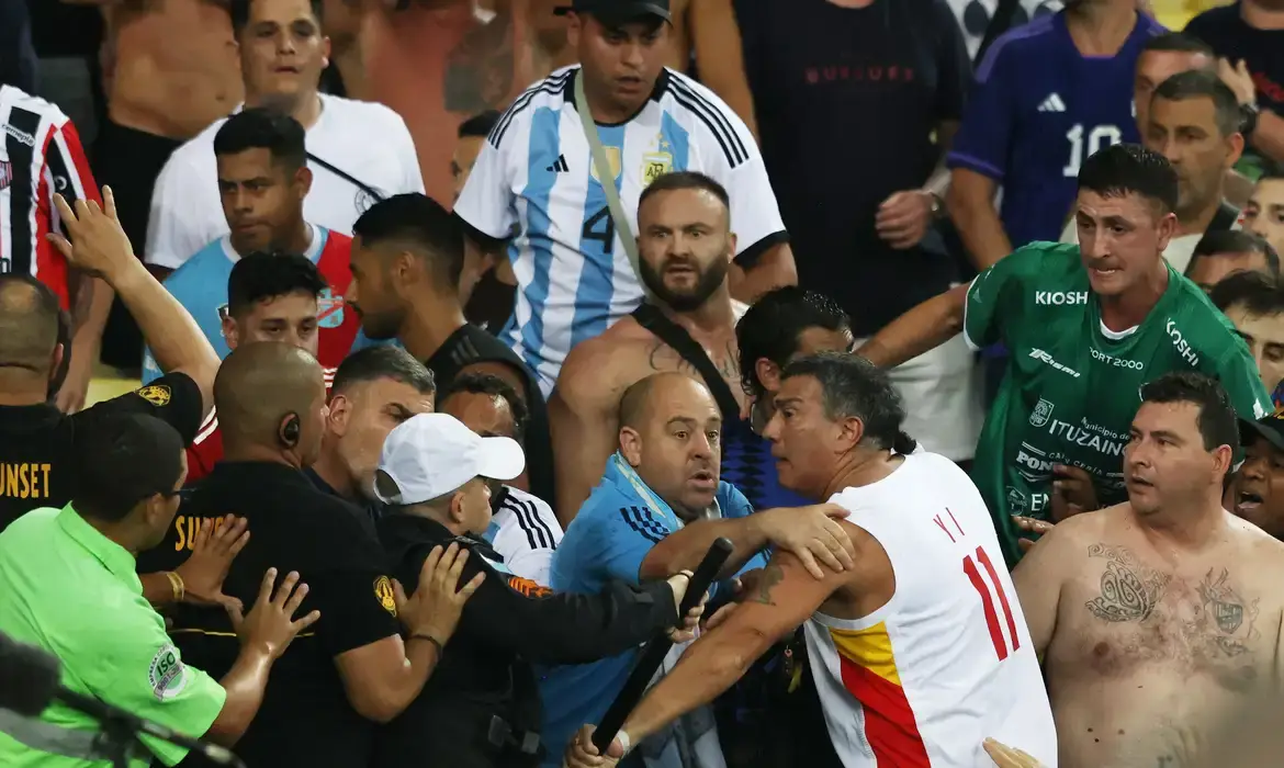Equipes disputam partida no Maracanã pelas Eliminatórias para a CopaMomentos antes do início da partida entre Brasil e Argentina, na noite desta terça-feira (21/11) no estádio do Maracanã, torcedores das duas equipes entraram em confronto no setor Sul do estádio. Após o conflito inicial, a Polícia Militar entrou em ação, mas a confusão aumentou ao invés de diminuir.