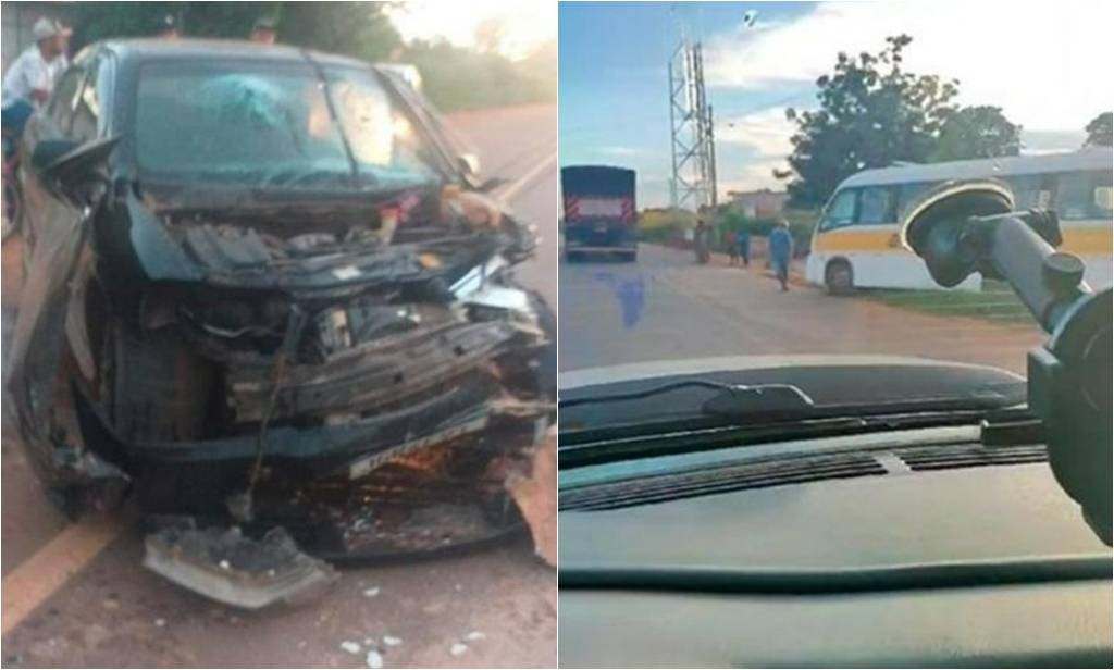 Carro colide contra ônibus escolar e acidente deixa feridos em município no Piauí
