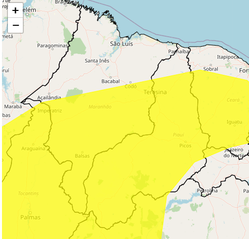 Alerta amarelo abrange praticamente todos os 224 municípios piauiensesO Centro de Gerenciamento de Riscos e Desastres (Cegrid), ligado à Secretaria de Estado da Defesa Civil do Piauí (Sedec), emitiu um alerta para os baixos níveis de umidade que atingem grande parte do estado nesta semana. Segundo o Instituto Nacional de Meteorologia (Inmet), dois avisos estão em vigor: um de perigo potencial (amarelo) e outro de perigo (laranja).
