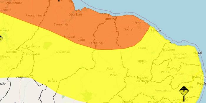 O alerta é válido para todo o Norte e Centro-Norte do Piauí.