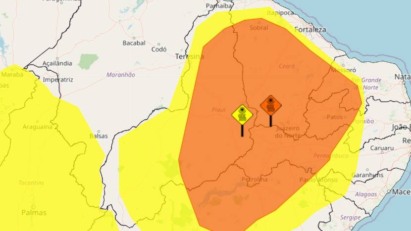Um alerta com indicativo de baixa umidade entre as regiões do Sul, Norte e Centro-Norte Piauiense também foi emitido pelo instituto.