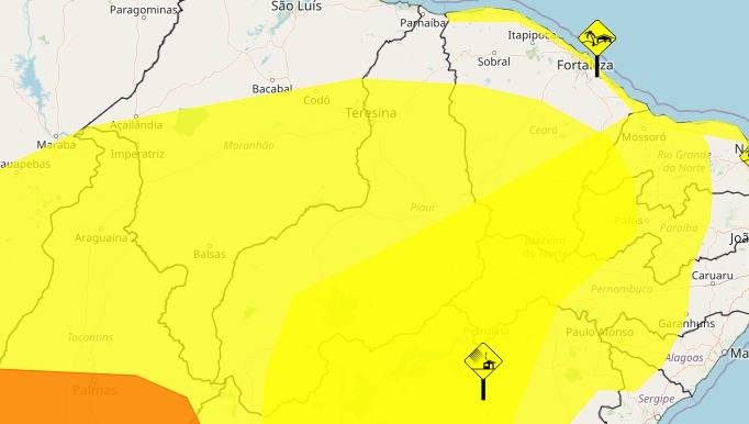 Já o alerta amarelo para Ventos Costeiros, válido até as 10h00min desta terça (12), refere-se à intensificação dos ventos nas regiões litorâneas, movimentando dunas de areia sobre construções na orla. O alerta é referente apenas ao Norte Piauiense.