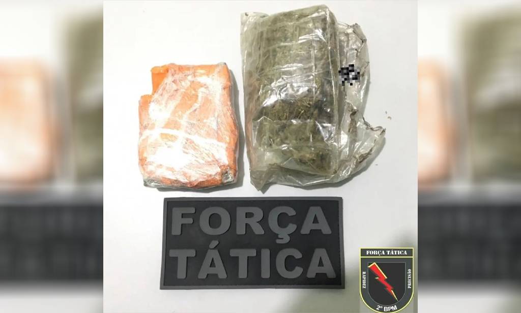Durante a ação, o homem tentou se desfazer de uma sacola, jogando-a por cima de alguns muros. A equipe realizou a abordagem, fez uma busca pessoal no indivíduo e recuperou o objeto descartado, que foi posteriormente constatado como sendo uma grande quantidade de substância semelhante à maconha (389g).