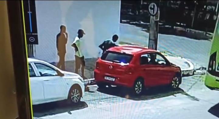 Como é possível observar nas imagens, os suspeitos visualizaram um carro vermelho com a porta aberta e obrigaram duas idosas a saírem do veículo. O proprietário do automóvel foi feito de refém. Depois, os assaltantes largaram a vítima no bairro aeroporto e seguiram para o bairro Santa Maria da Codipi, zona Norte da cidade, onde realizaram um arrastão.