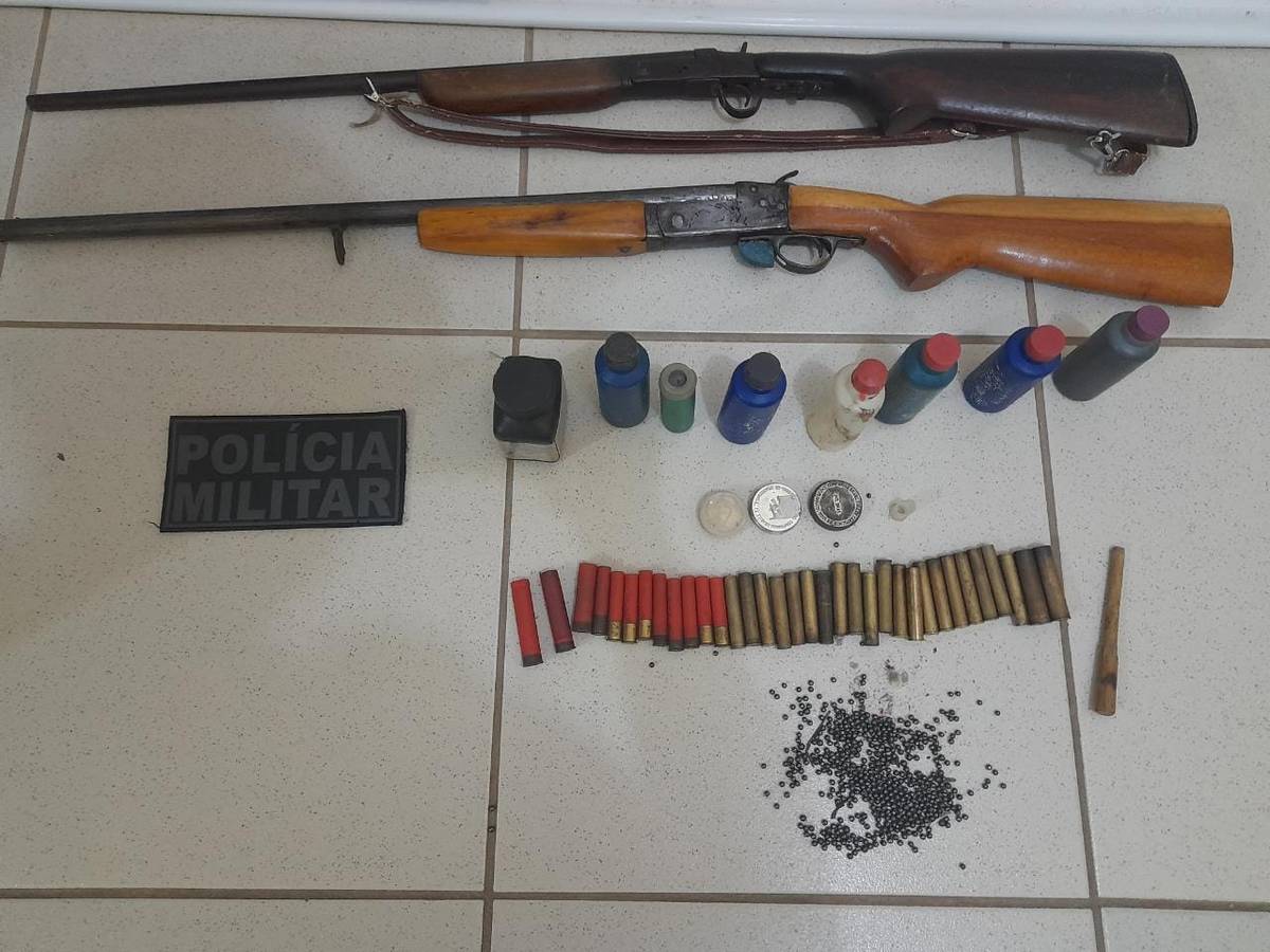 PM prende homem por porte ilegal de arma de fogo e apreende espingardas